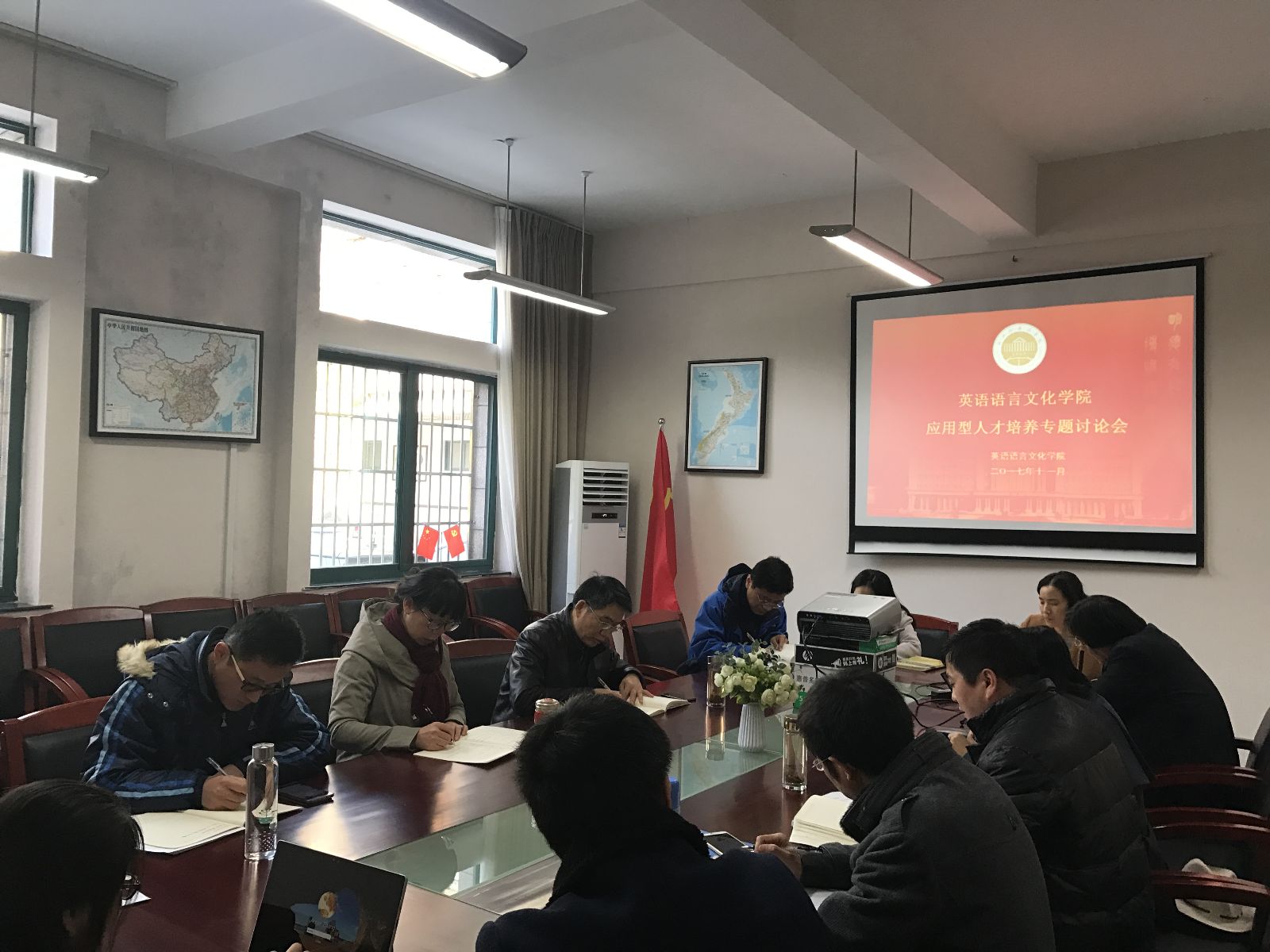 为进一步推进学院课程与教学改革,提升应用型人才培养成效,近日,英文学院召开了应用型人才培养专题讨论会,学院党政班子成员、学术委员会委员、教学委员会委员、各系负责人、办公室、学工办、教学教务等相关人员参加了讨论。