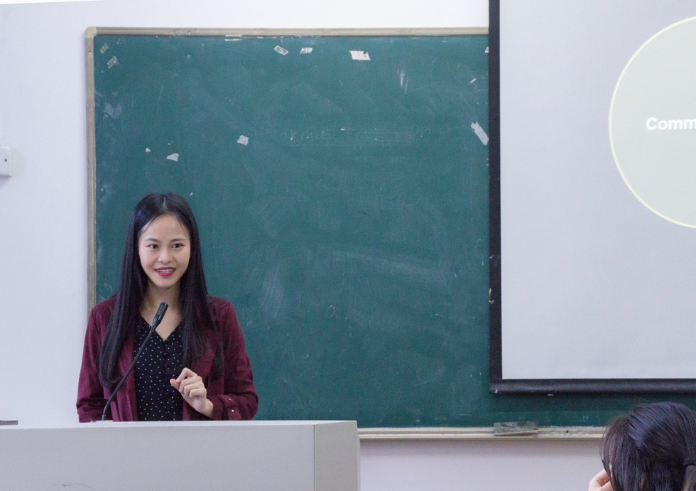 本次宣讲会由蓝天教育杭州校区校长、英文学院2014届毕业生倪张苗主讲。她结合自身求职经历以及在蓝条教育的工作经验,从求职历程、职业规划、工作理念等多方面,为即将踏入社会学子们讲授了职业生涯规划的重要性以及职场工作中的众多注意事项。同时向在座学生们讲解蓝天教育基本背景、相应的培训体系及发展模式,帮助学生进一步深入了解蓝天教育。