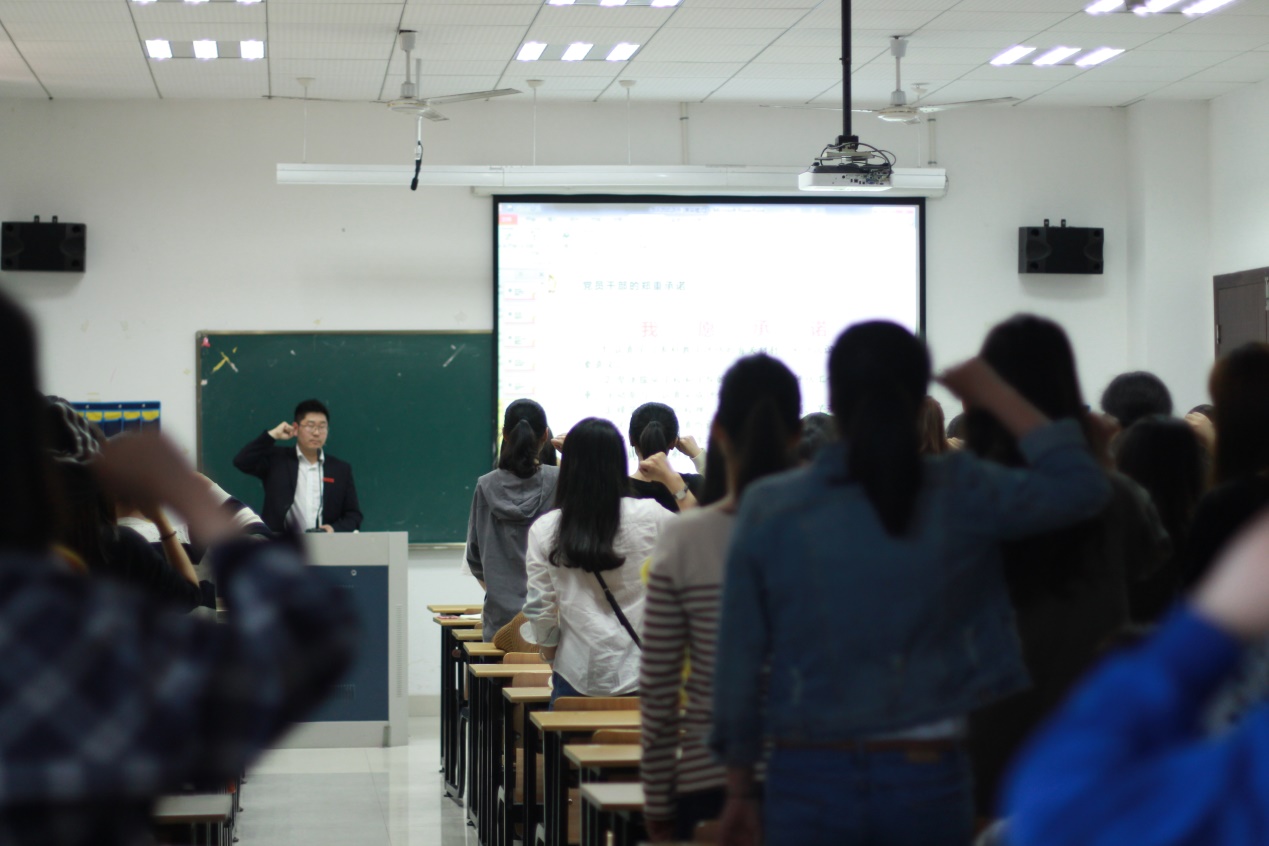 党总支副书记刘涛于4月27日下午在品院A508与全体党员、积极分子、学生干部分享了《我与我的浙外》的心路历程,以此激发学生的迎评热情和爱校情怀。