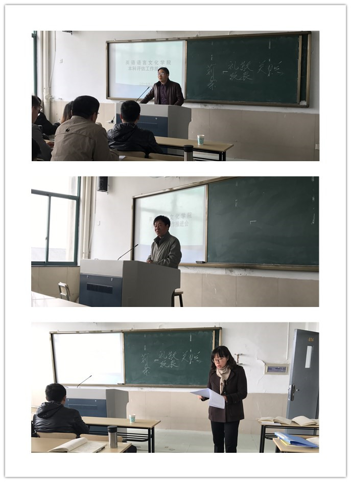 3月23日下午,英文学院召开本科教学评估工作推进会,学院全体教职工和部分学生代表参加了会议。