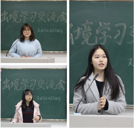交流会邀请到了卢姚惠、朱倩倩和胡苗苗三位同学为大家分享了她们在国外学习生活的心得。其中卢姚惠和胡苗苗两位同学以风趣幽默的方式分享了她们赴美带薪实习这段奇妙历程。同时,也从实际出发向大家讲解了出国应该注意的细节。朱倩倩同学就她在德国魏茵加藤教育大学做交换生的经历,与我们分享了她在国外的校园生活以及有关于出国这段经历的得失与感悟。