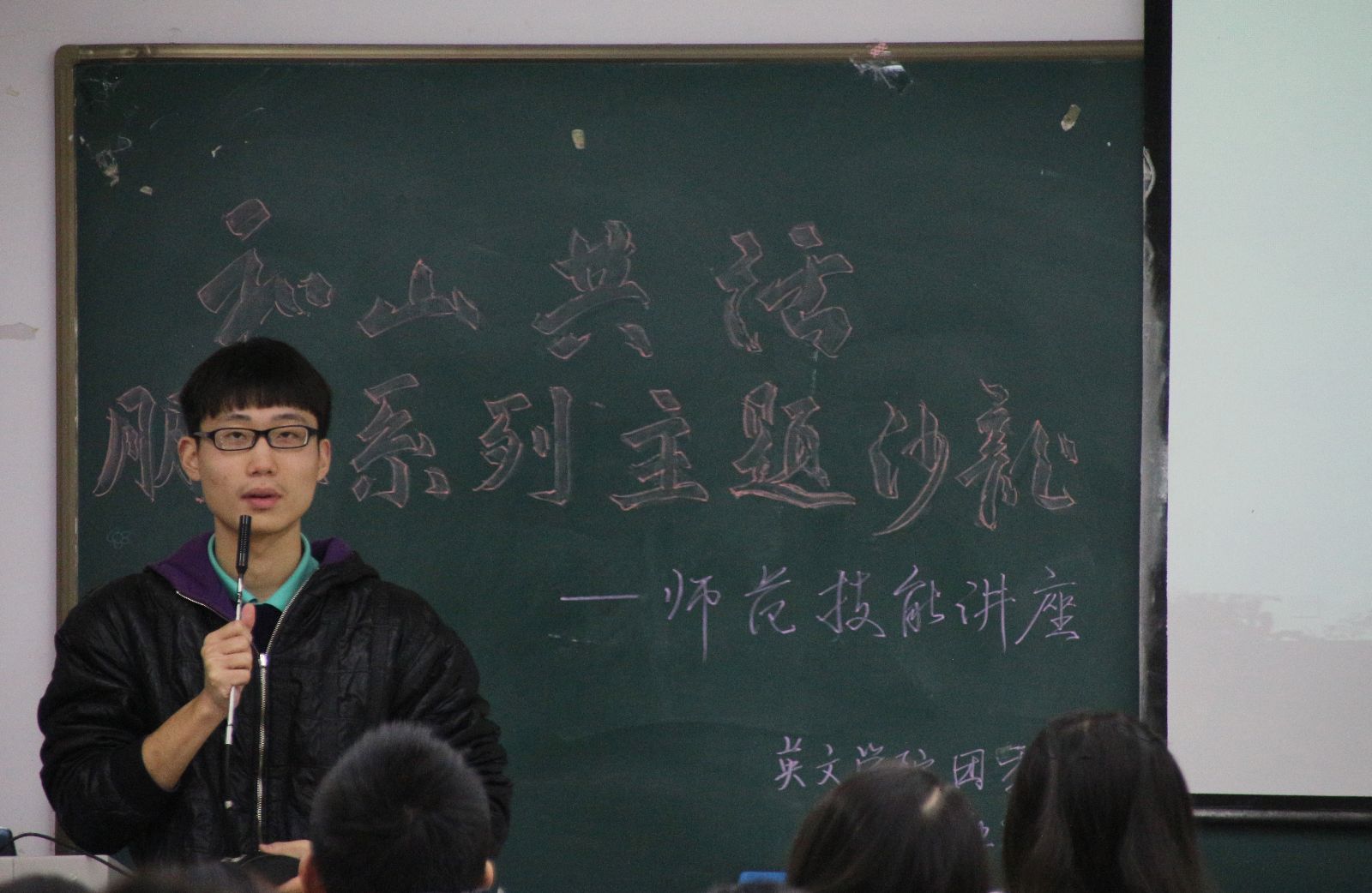 于12月18日晚举行“和山共话——朋辈系列主题沙龙之师范技能讲座”。英语师范专业优秀的高年级学生汪飞洋、纪思芸和张英与同学们分享他们的学习心得。