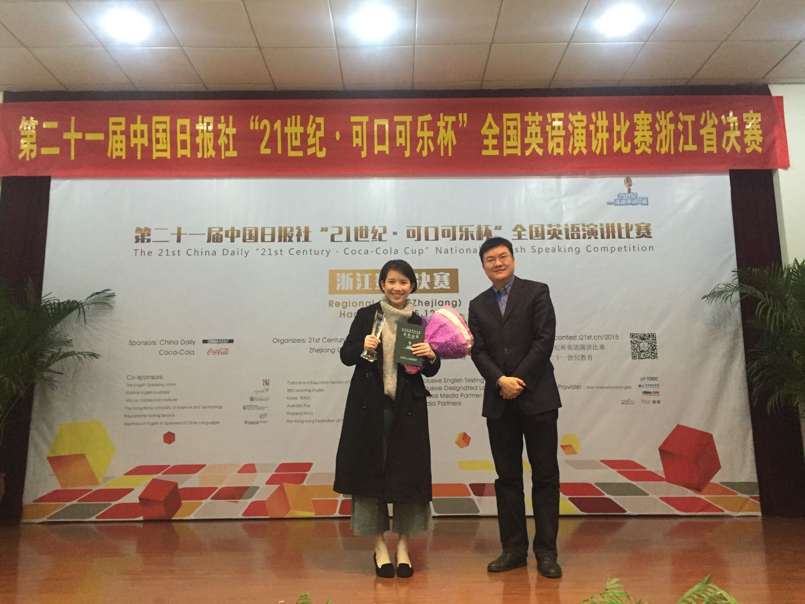 学生、英语演讲队成员邵优然获浙江赛区一等奖(季军)并获得代表浙江赛区赴北京参加全国半决赛资格。