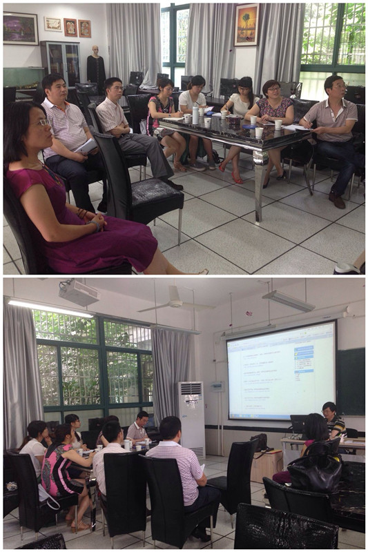 2015年6月25日上午, 江西上饶师范学院外语学院施枚峰副院长带领《语言学》和《综合英语》精品课程组负责老师一行6人来英文学院进行调研,了解和学习 国产av 相关课程的建设发展情况。