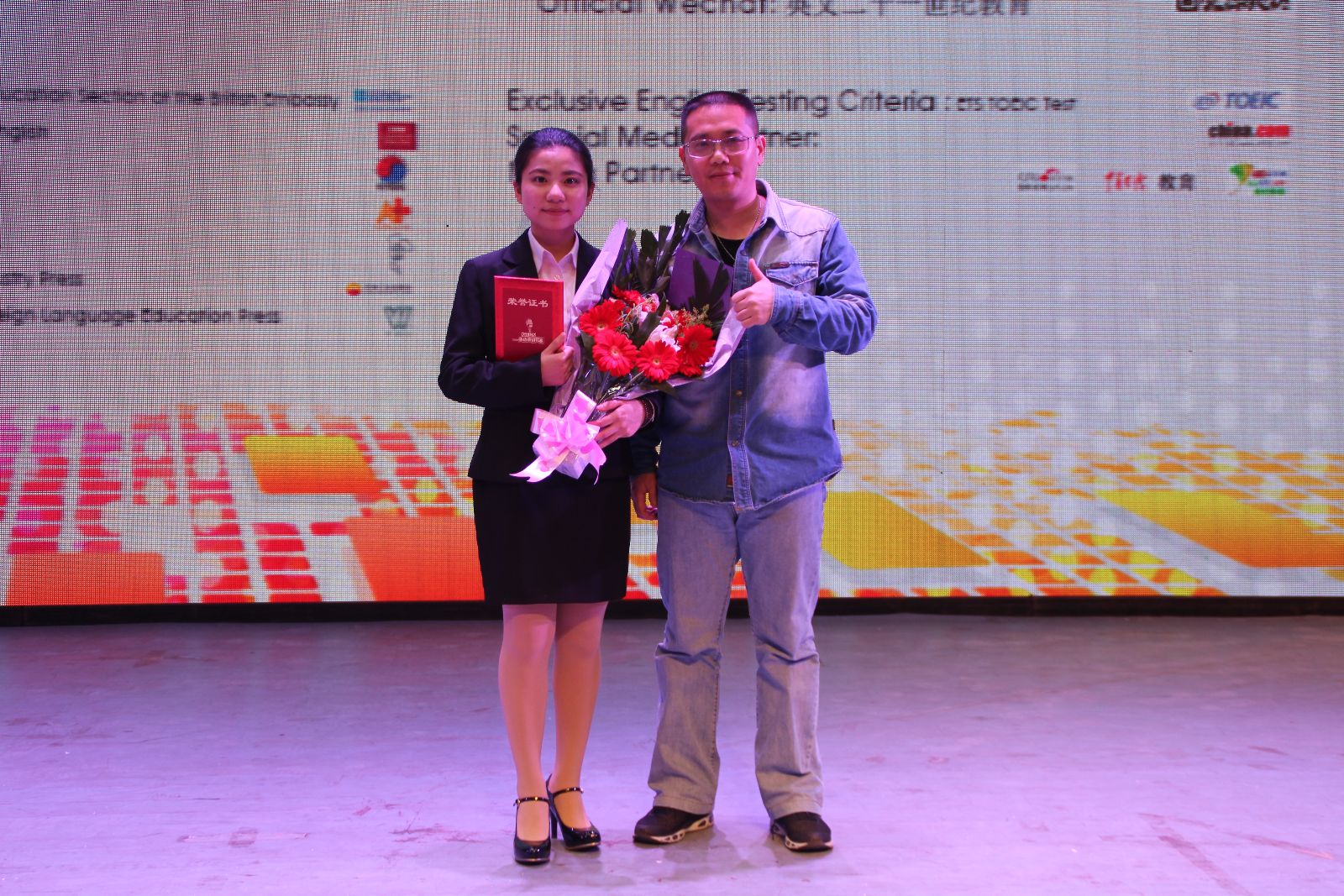 学生、英语演讲队成员何屺昕同学在楼翎老师的指导下,代表浙江省参加此次全国比赛。在来自北京大学、清华大学、澳门大学、香港科技大学、淡江大学等高校的64名选手中以排名第20的好成绩荣获全国三等奖。