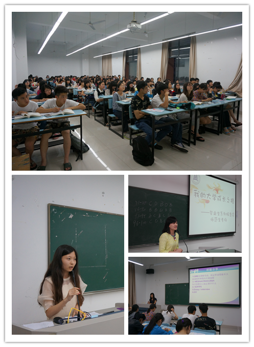 此次系列报告会针对不同专业,分英语师范、英语商务、英语翻译、英语四场。围绕攻读研究生、教师招聘考试、公务员考试、企业求职等方向,精心选择了优秀毕业班同学作报告,讲述了大学学习生活的点滴感悟。英文学院向来重视朋辈教育形式,积极探索在分享中生成、探究中成长的新理念、新模式和新方法,以身边人身边事作为生动教材,共享心得体会,促进学生成长成材。