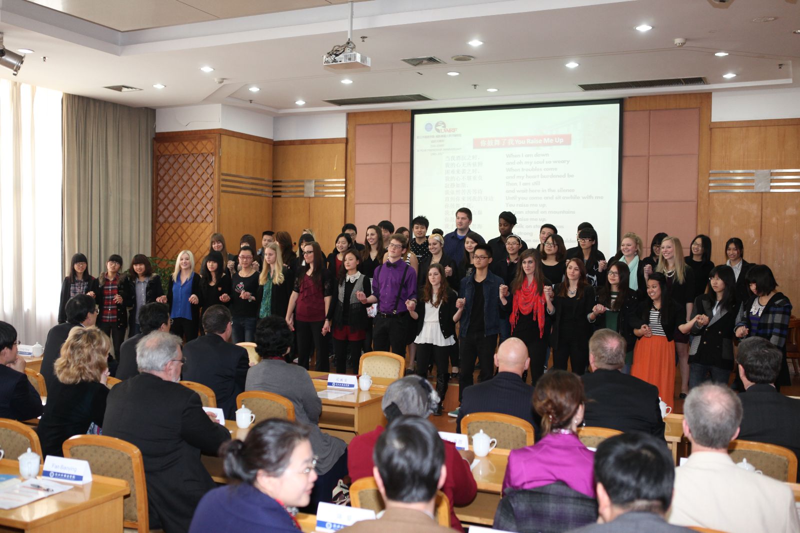 在欢迎仪式上,大家在Family Tree上签名。这是我们共同的家。