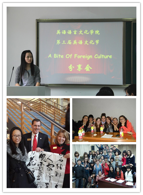 赴威斯康星大学河城校区、美国华盛本大学、美国中阿肯色大学、台湾屏东大学和暑期赴美带薪实习的6名学生代表从语言学习、项目申请、课程选择、文化差异等方面分享了他们交流学习的感受和收获。此外,来自商务英语实验班的学生代表介绍了他们与美国18名“体验中国”留学生一起学习生活的经历。他们通过丰富的图文和视频将境外学习、生活情况栩栩如生地展现在大家眼前,其间穿插了趣味问答环节,使听众在活跃的氛围中加深了对不同文化的了解。