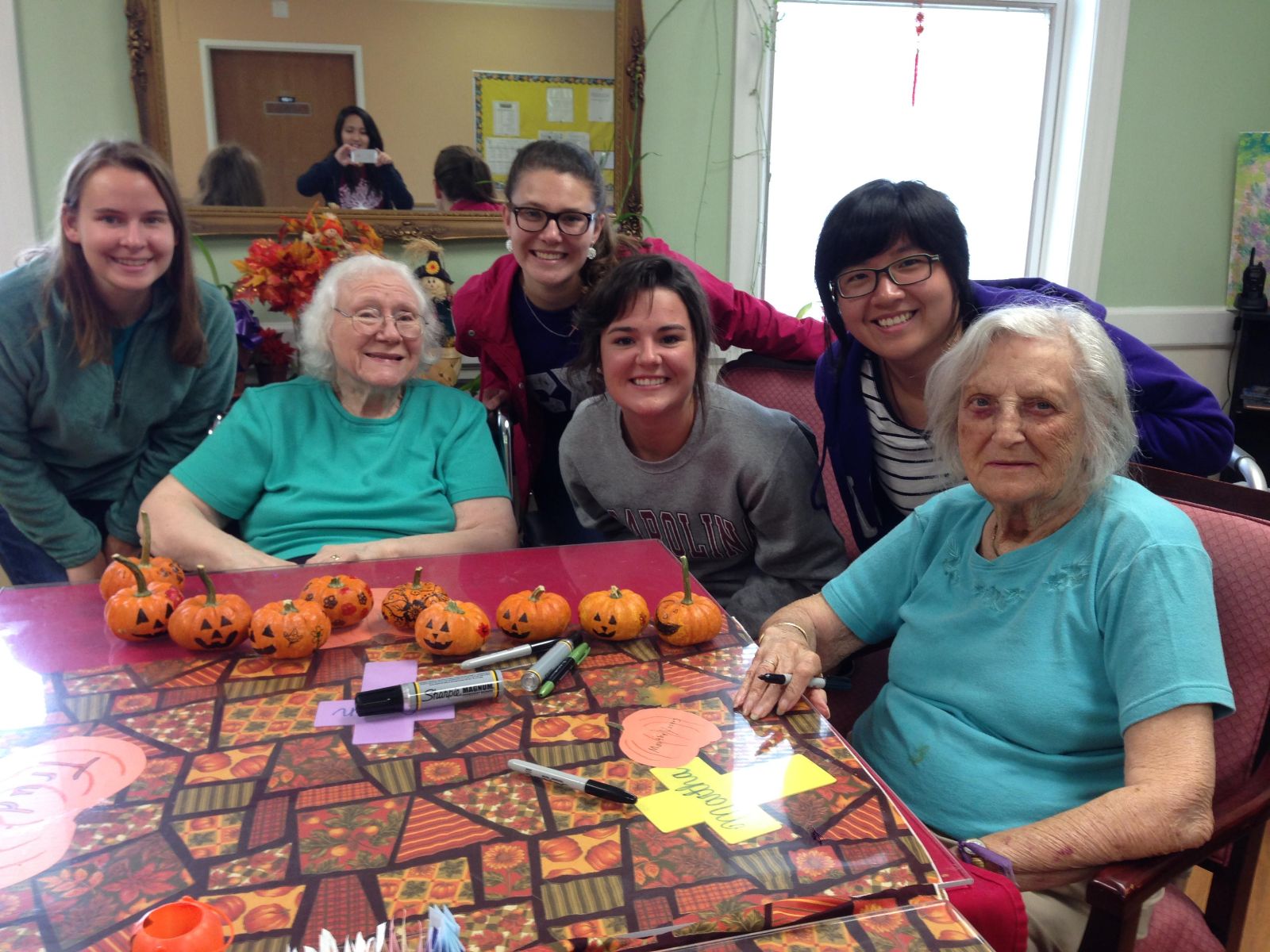 组织的社区志愿服务。我们定期到社区的敬老院陪伴老人们聊天,做游戏,做万圣节装扮,为圣诞节布置大厅等,每一项活动都很有意义。当老人们知道我千里迢迢从中国来时,他们都特别热情,并且向我询问各种问题。每当看见老人们脸上的微笑,我都特别开心。这也许就像我在美国国务院官网上登出的那篇文章一样 ‘Sometimes, giving is better than taking’。”