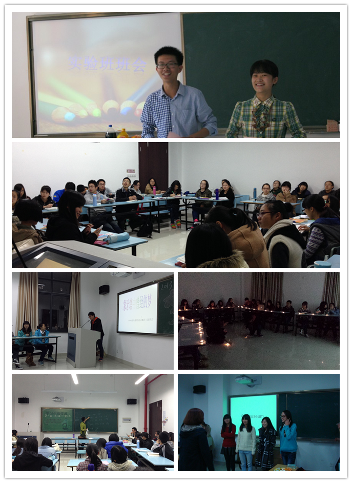 英文学院2013级11个班在班主任的指导下分头行动,班会方案设计新颖,同学们乐在其中,收获着不一样的成长。“IT’S NICE TO MEET YOU”、“How can you make your college life more colorful ?”、“家的味道”包饺子活动、“同一片天空下的我们”一系列形式各样的班会活动,让同学们在游戏互动和畅谈分享中认识到同窗友谊的可贵与温暖,增强了“We are family”的班集体意识。