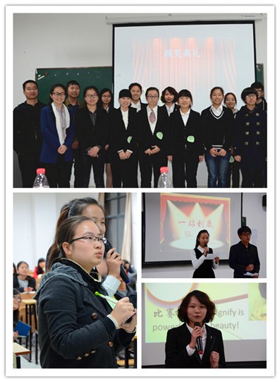 在“一站到底,礼仪达人”——东西方礼仪文化知识竞赛中,来自全校17位同学从近100名参赛选手中脱颖而出,参加了决赛。此活动在文明礼仪知识的基础上增加了跨文化交际的内容。比赛从东西方文明礼仪入手,分为自我展示、必答题、抢答题和情景再现等环节。它不仅为同学们提供了一个展现自我风采的舞台,也使大家增进了文明礼仪,特别是涉外文明礼仪方面的知识。最终,来自英文学院的周根梅获得了一等奖。