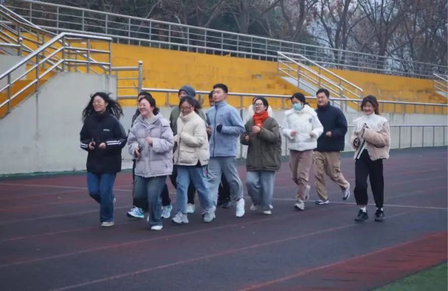 在晨跑队队长的带领下完成热身后,晨跑队的队员们踏上跑道,新年的第一跑在响亮的口号声中开场!虽有寒风不断拂过脸庞,但队员们热爱跑步的心依然热情地跳动着。“No pain,No gain!One team,One goal!”随着口号的不断呐喊,晨跑队用充满能量的身姿宣告新的一年,新的挑战的到来!
