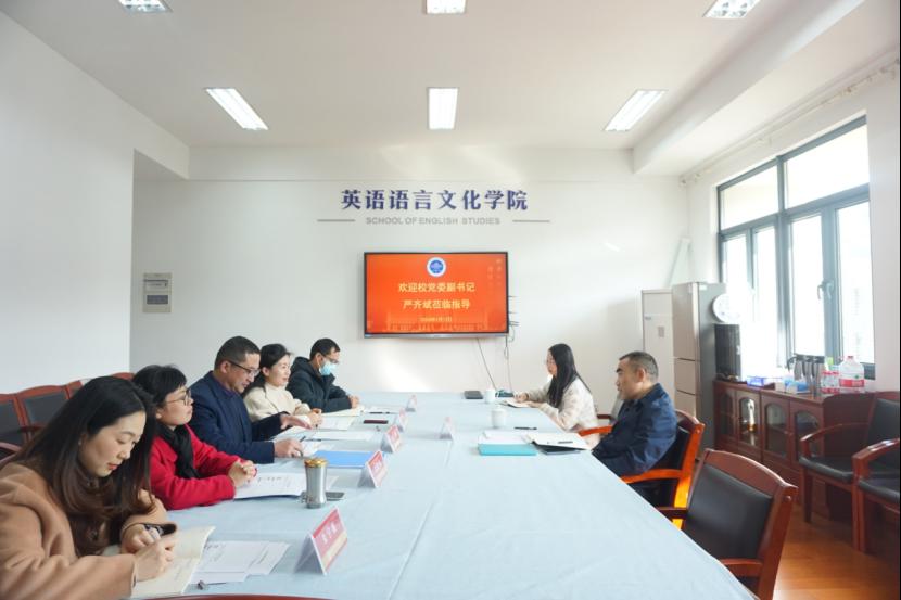 1月12日下午,校党委副书记严齐斌到英文学院走访调研。学院党政班子成员、办公室主任参加了调研座谈。校办工作人员陪同。