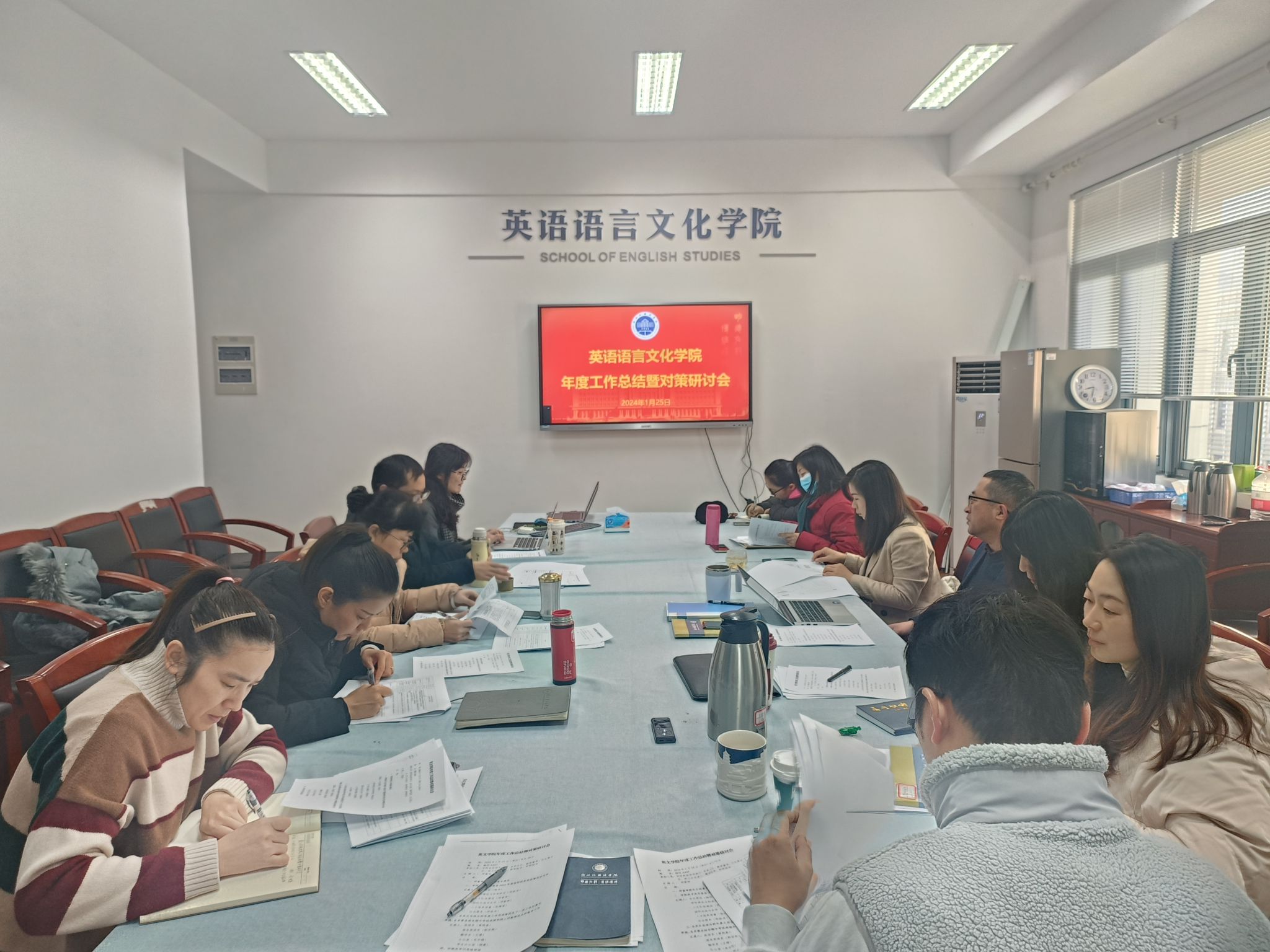 1月25日,英文学院召开年度工作总结暨对策研讨会。学院党政领导班子、各系主任、教学督导、办公室主任、学工办负责人、教学秘书、科研秘书参加会议。会议由院长邢富坤主持。