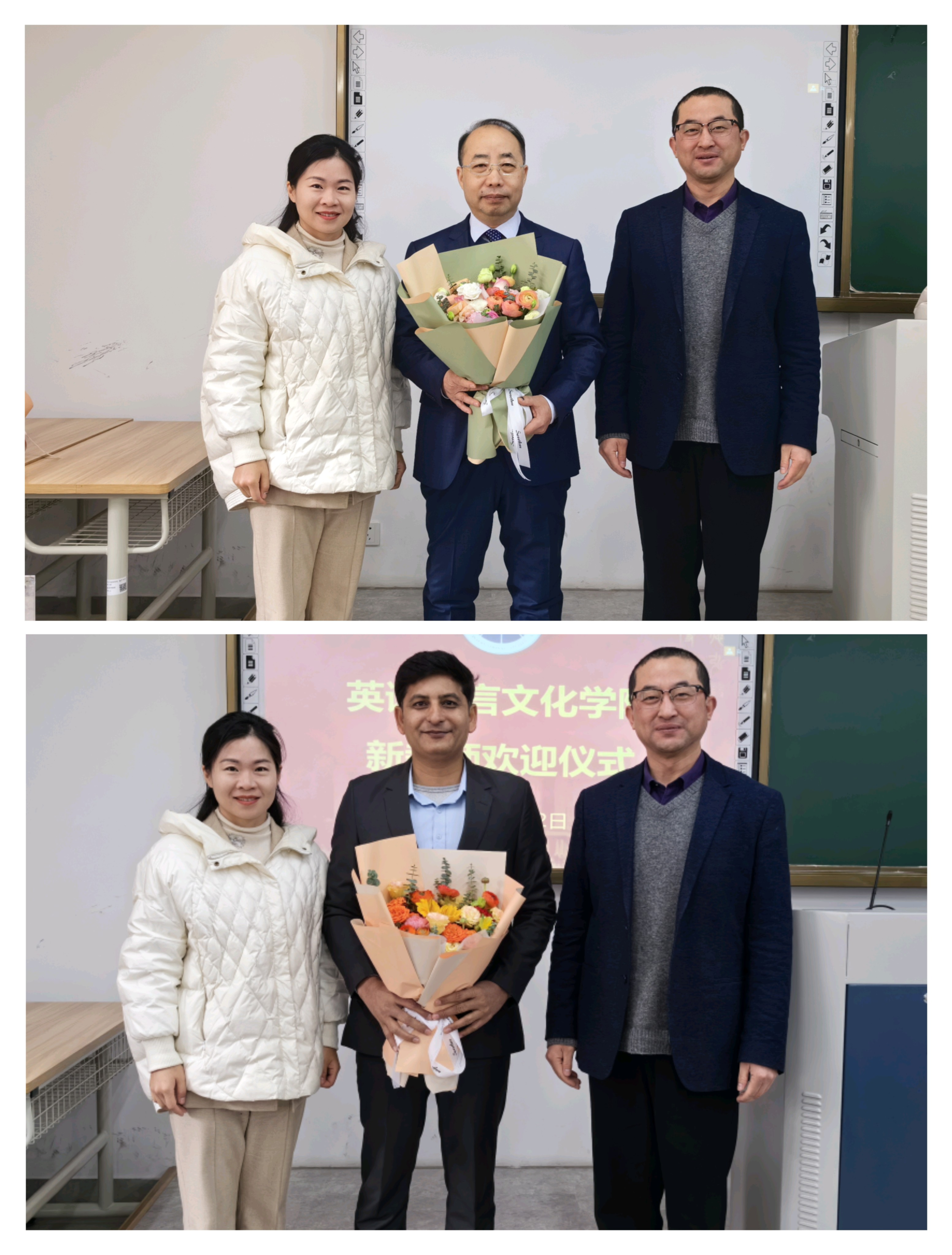 在会前举行的新教师欢迎仪式上,院长和书记为本学期新入职的特聘教授和外籍专家献上了鲜花。在随后举行的学科带头人聘任仪式上,学院班子成员为学院五大重点发展学科的负责人颁发了证书。