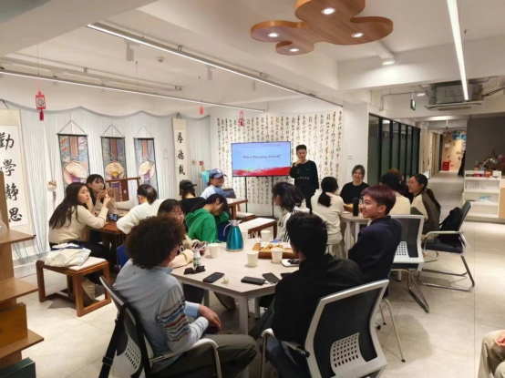 4月11日下午,英文学院“理解当代中国 知行活力浙江”跨文化交际时光活动第六期如期开展。来自21商务英语2班的王永超以乒乓球运动为主题,带领我们了解了中国乒乓外交事业的发展。来自土库曼斯坦、巴基斯坦、韩国等国家的留学生们与英文学院的师生在乒乓球场体验了乒乓球运动的魅力。