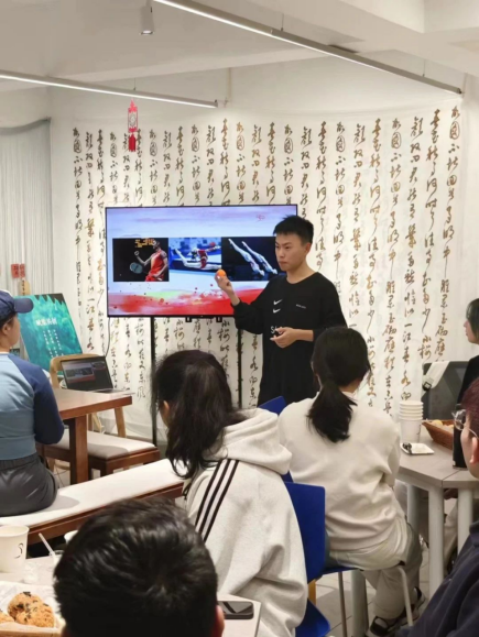 王永超首先向大家介绍了乒乓球运动的起源和发展,详细地讲述了乒乓球运动从发展走向壮大的历史。期间,王永超热情地与留学生们互动,和他们交流各自国家杰出的乒乓球运动员以及平时看过的精彩的乒乓球赛事。