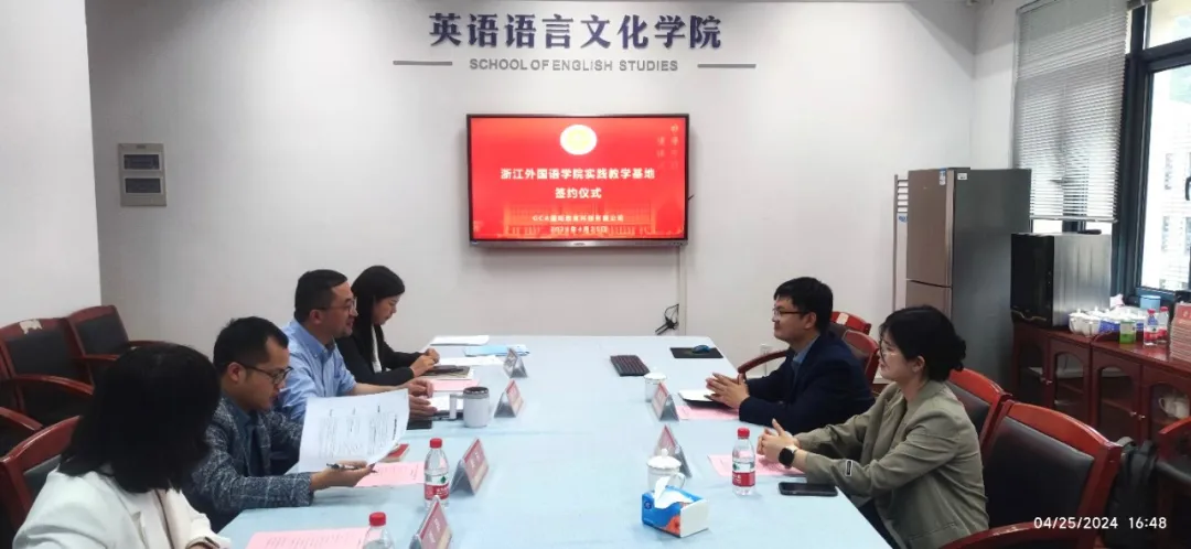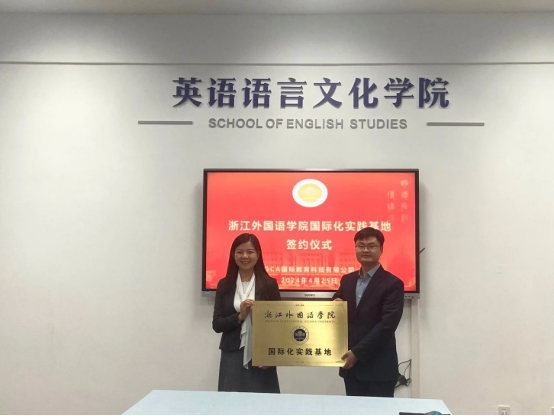 4月25日,GCA国际教育集团执行总裁、项目主管等一行人来访英文学院,举行实践教学基地、国际化实践基地签约授牌仪式。院长邢富坤、副院长陶伟、党总支副书记张豫晋、院长助理周静、团委书记顾蒙参加。