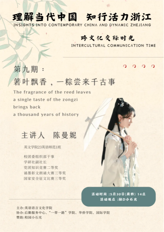 为弘扬“闻道中华,语美天下”的浙外精神,助力青年学生深入理解当代中国,知行活力浙江,讲好中国故事、浙江故事,传播好中国声音、浙江声音,英文学院将继续在校园小石光开展“跨文化交际时光”系列活动。