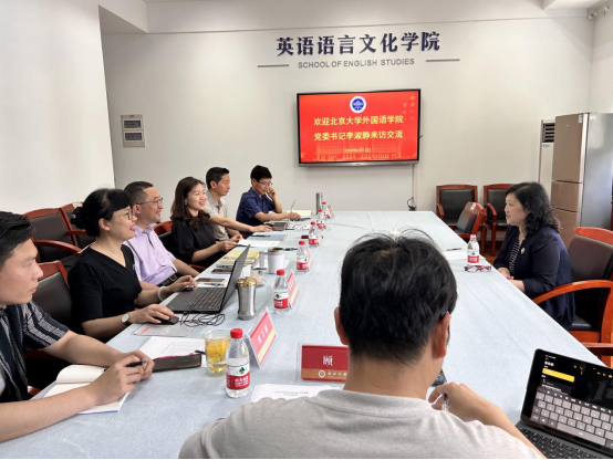 6月13日,北京大学外国语学院党委书记李淑静与英文学院各学科团队座谈交流。学院党政班子全体成员、各学科团队带头人、学工办负责人等参加了座谈。