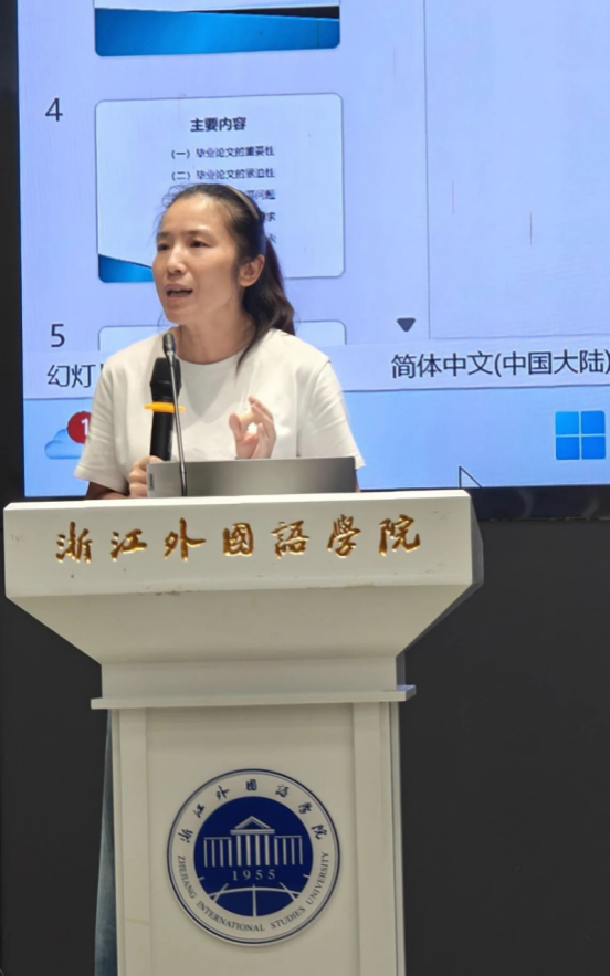俞海燕演示了毕业论文管理系统的操作,并结合往届案例重点提醒学生在系统截止时间前提交相关资料;她还要求学生在上交资料前反复核查,规避低级错误,提高材料的规范性;同时提醒非师范班的学生能够充分利用暑假时间完成见习任务。