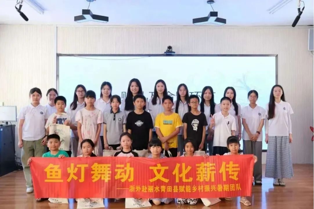 ,为当地的“侨留守”孩子们搭建起一座连接家乡文化与现代教育的桥梁。团队结合自身专业优势,聚焦当地非遗文化——青田鱼灯舞,为孩子们带来精彩的鱼灯舞特色课程,提供暖心的陪伴。同时,团队也积极探索非遗保护传承新路径,助力青田鱼灯舞“游”向全国,“游”向世界。