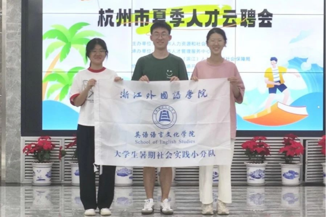 在“百日千万招聘专项行动”杭州市夏季人才云聘会的招聘现场,成员们还和一些应聘者进行了交流。在和几位来自国际经济与贸易(全英)专业的应聘者交流的过程中,成员们了解到在当前的求职市场中,特别是在对外贸易等领域,“能进行熟练的外语对话”成为应聘者需要的一块“敲门砖”。