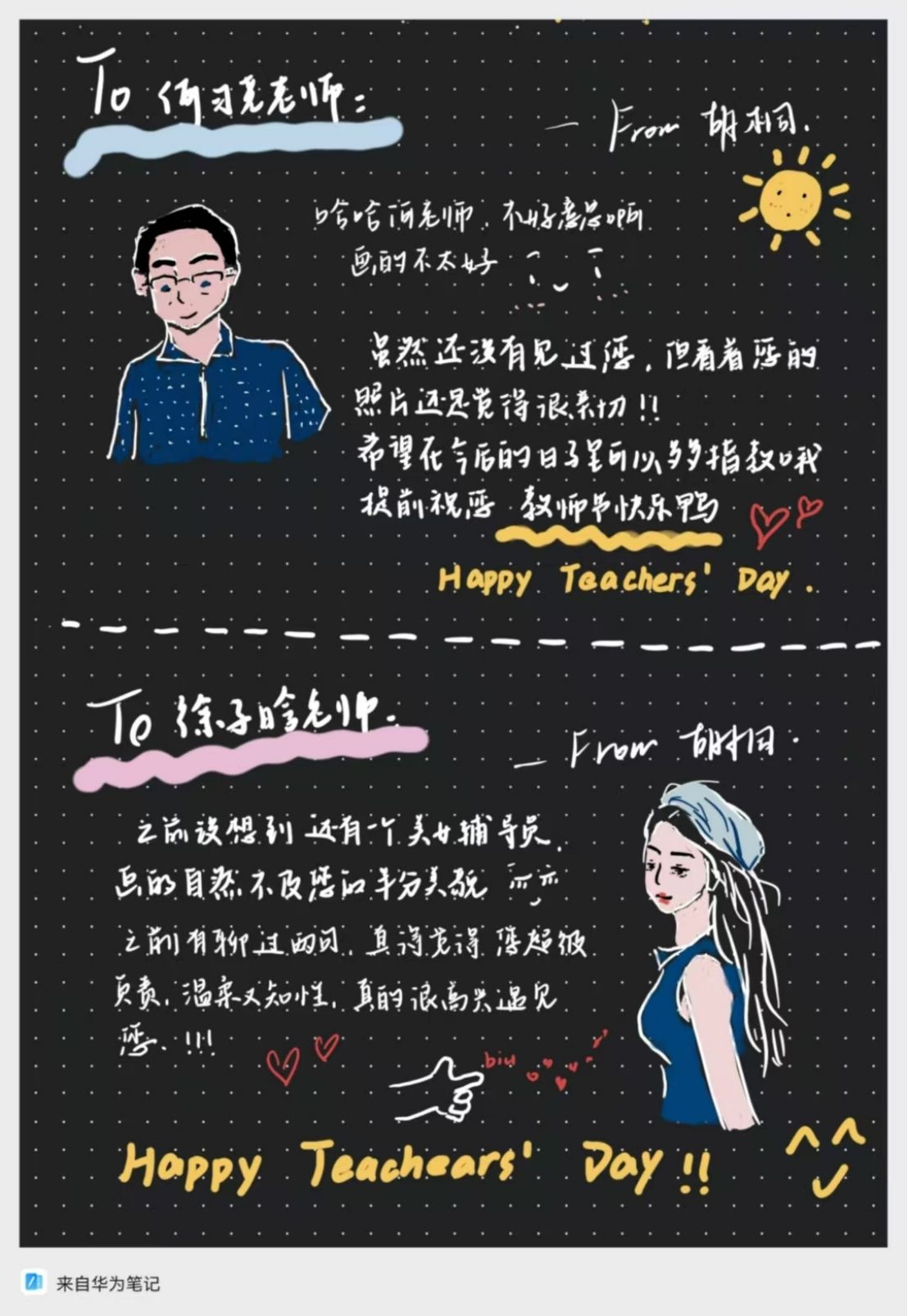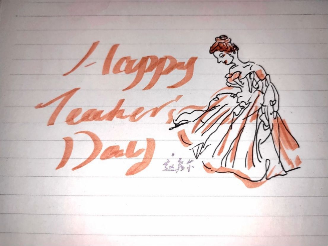 徐舒仪老师,祝您教师节快乐!无论是美国文学还是英国文学,您的课堂都是那么轻松愉快。我本不喜爱阅读文学作品但在您的课堂里我学到了许多知识。每一次报告虽然耗时很久,却都给了我主动探寻一部作品的机会,去感受文字间传递的感情,去培养自己的理解,还有这也大大锻炼了我的互联网检索能力。您也总是不吝夸奖,偶尔也会提出一些小建议,这给了内耗的我很大的鼓励。有时候,感觉您就像我们的朋友,你会略有所闻我们所熟知的话题,并给予回应。您是一位可爱温柔和蔼的老师,很荣幸在大学里遇到您。最后,祝您工作顺利,身体健康,天天开心!