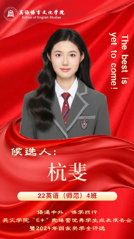 为扎实推进学院国家奖学金评选工作,发挥青年榜样的示范引领作用,充分展示英文学子成长事迹和精神风貌,学院将组织开展英文学院“E+”先锋营优秀学生成长报告会暨2024年国家奖学金评选。