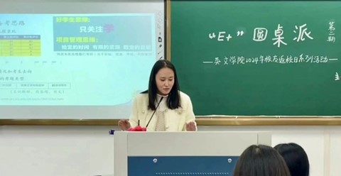 英文学院2013届英语(师范)专业校友、杭州长江实验小学英语教师、英语教研组组长谢薇薇为学弟学妹们带来了题为“Grow as an English Educator”的分享。她介绍了英语教育者成长与职业规划,向大家传授教学提升与职业规划心得。她强调,大学期间我们应积极参与课堂、规划四年学业,此外,她还指出了实习、学历、资格证对求职的关键作用。谢薇薇展望了英语教育者多元就业的前景,鼓励同学们在大学期间提升专业能力,明确职业方向。