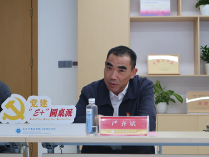 在党建“E+”圆桌派环节,支部以“发挥翻译专业优势,提升国际传播能力”为主题开展了研讨沙龙。严齐斌在听了党员们的交流发言后,高度肯定了支部“译点点”微党课活动得创新性和专业性。他强调,做好基层党建工作,要遵循“严”“活”“实”:严格执行和落实“三会一课”等制度,同时创新活动形式,开创内容丰富、形式多样、服务精准的支部活动,扎实推进各项工作。作为翻译专业的学生,同学们既要了解本国文化,也要知晓他国文化,讲好中国故事,让世界听见中国的声音。他希望大家通过不断努力,能成为有理想有道德的有志青年、专业专注的有识青年、向上向善的有德青年、奋进奋斗的有为青年,为实现中华民族伟大复兴的中国梦贡献青春力量。