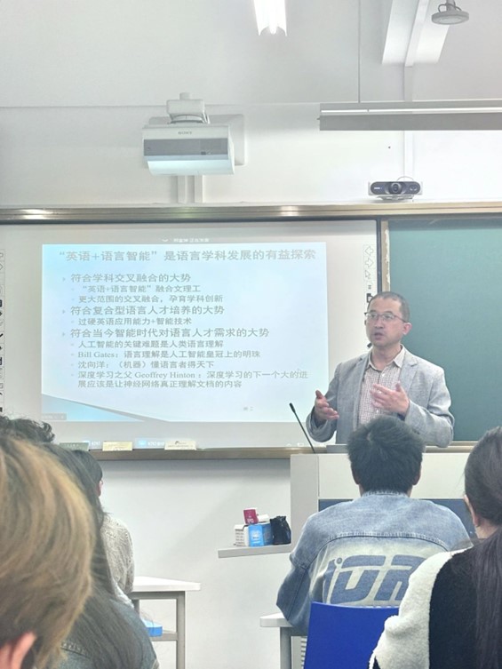 院长邢富坤以深入浅出的方式介绍了语言智能的定义、学习内容、就业方向等。他结合生动的案例与宝贵经验,强调了“英语+语言智能”的重要性,并鼓励新生们积极拥抱新技术与新挑战。同时,新生班主任刘懿也为同学们提供了实用的学习建议,鼓励他们主动探索、勇于实践,为未来的职业发展做好充分准备。