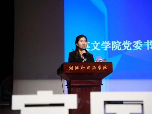 11月1日下午,英文学院国际交流总结表彰暨新生国际化启蒙教育大会于追梦堂隆重举行。副校长柴改英,浙江文化“走出去”协同创新中心主任赵伐,国际交流与合作处副处长严伟剑,英文学院党委书记田俊杰,副院长郑淑贞,英文学院特聘教授张贵洪,翻译系教师李乐,英语系教师白天依、张静静,外籍专家James O’Donnell,相关企业代表,学院办公室、学工办教师代表以及全院各年级学生参加。大会由院长助理周静副教授主持。