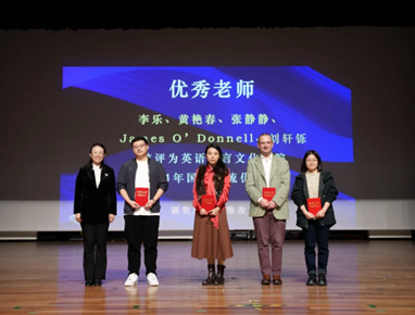 随后,举行英文学院2024年国际交流表彰仪式。柴改英、赵伐、张贵洪、郑淑贞分别为学院2024年国际交流优秀老师、优秀团队、优秀班级及优秀个人颁奖。