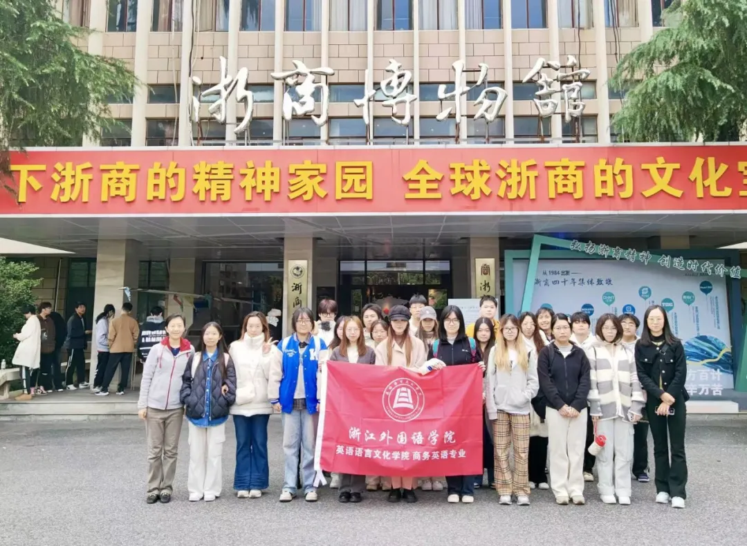 近日,英文学院商务英语专业教师陆海霞与赵歆带领着商务英语专业2022级与2023级的逾百名学生,走进了坐落于浙江工商大学老校区的浙商博物馆,开启本学期的商务英语专业实践周参访活动。此次参访活动旨在让学生们通过亲身体验浓厚的商务环境,深化对浙籍商人及其所承载的浙江商业精神文化的认知和理解。
