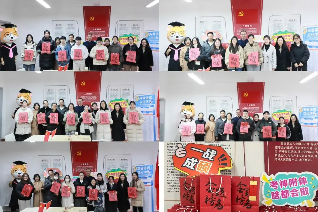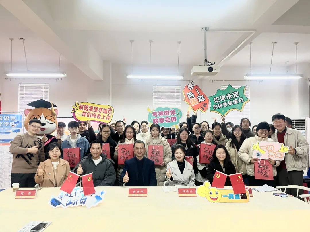 12月18日,英文学院院长邢富坤、党委书记田俊杰、党委副书记欧万彬、学术副院长盛煜冰、院长助理周静和学院辅导员一起,与学院2025届考研学生齐聚一堂,相互加油鼓劲,并送上了心意暖暖的“考研大礼包”,愿这份温暖一直伴随考研学子顺利上岸,开启新征程!
