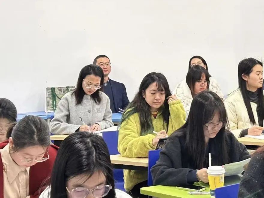 课堂上,张环宙专注听课,仔细记录课堂内容,密切关注教师的教学状态和学生的听课反应。在课堂导入环节,章珏老师从“什么是历史”“为什么学习历史”以及《世界历史与国际政经》课程的初印象等问题出发,由浅入深,带领学生逐步明确课程定位、学习内容和目标,激发了学生的思考与参与热情。