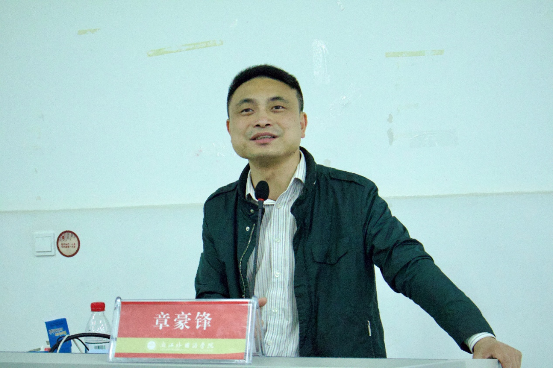 3月27日下午,浙江工业大学创业导师、“挑战杯”系列竞赛资深指导老师章豪锋受邀参加英文学院“学术领创”系列活动,以“高层次学生课外学术科技竞赛项目申报”为题作讲座。英文学院党委副书记、纪委书记欧万彬,英语师范专业学生第二党支部书记吴小慧,专业教师李乐、曾芳芝及150余名学生参加。