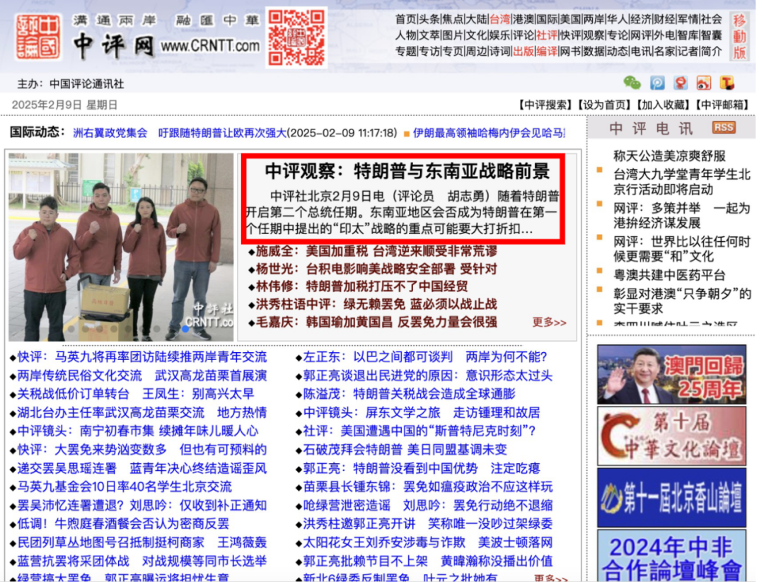 近日,中国评论新闻社头版刊发了英文学院特聘教授胡志勇的文章。文章中,胡志勇就特朗普与东南亚的战略前景等问题发表评论。