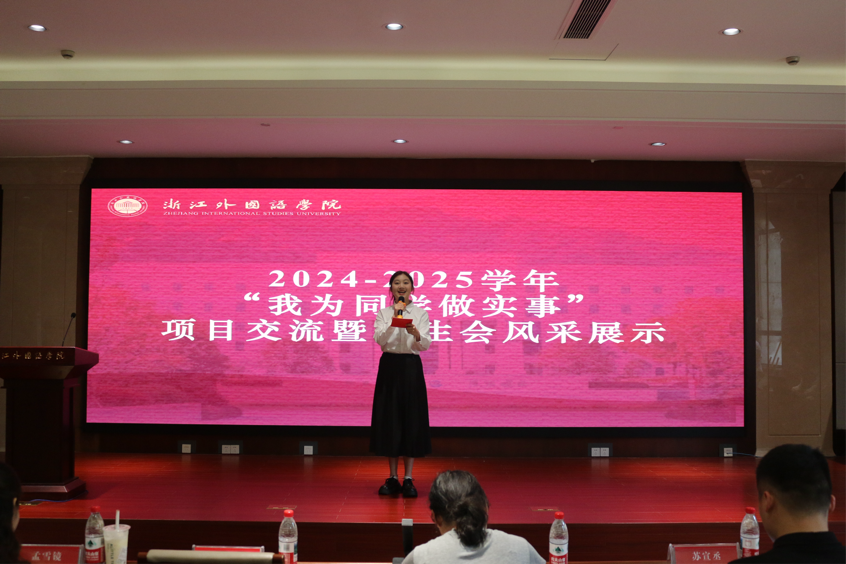 为深入贯彻“我为同学做实事”精神,弘扬“全心全意为同学服务”宗旨,2025年6月5日下午,浙江外国语2024-2025学年“我为同学做实事”项目交流暨学生会风采展示在厚德楼102举行。本次评比活动中,英文学院表现卓越,满载而归: “生情E+:全心‘权益’,绘学生校园画卷——‘生情驿站’公共文化空间项目”荣膺“精品项目”; “E+精神领航,红色外语赋能:全方位学生思政服务项目” 也斩获——“优秀项目”殊荣。