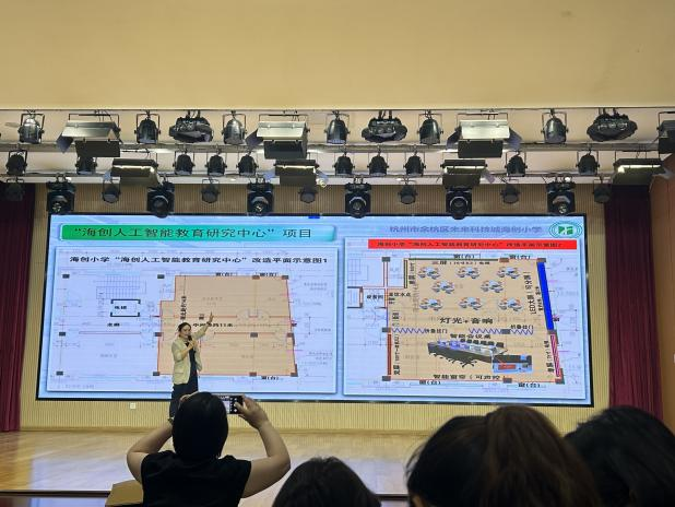7月5日,英文学院外语教育系教授刘懿带领学院英语(师范)专业学生以及来自全省各地的一线教师走访了杭州市余杭区未来科技城海创小学,深入考察该校在人工智能(AI)赋能教育领域的创新实践。
