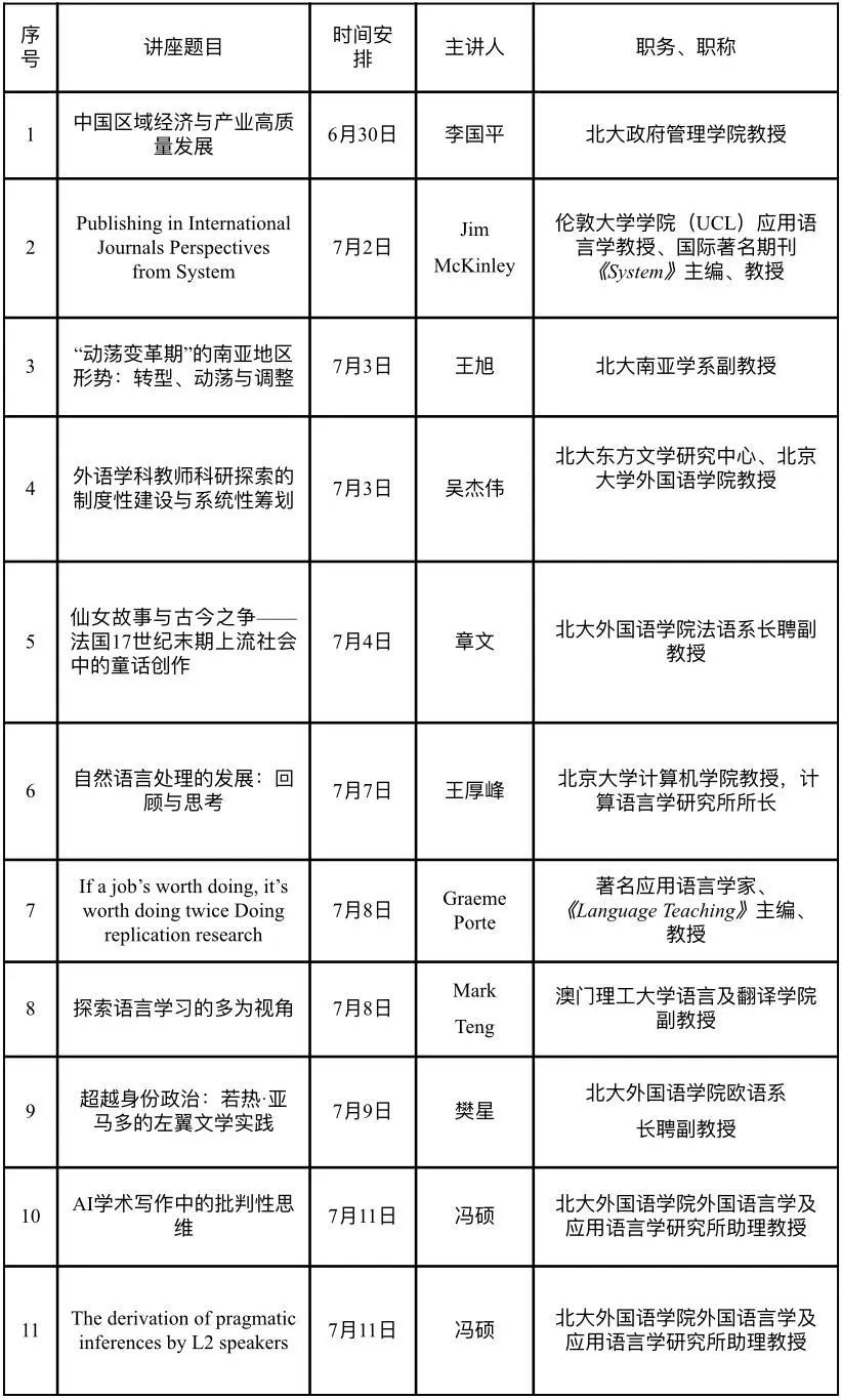 暑期小学期期间,英文学院依托北京大学、新加坡南洋理工大学、澳门理工大学等海内外优质高校资源,打造高水平学术共享平台,全面拓展学生的国际化学术视野与研究能力。学院开设系列特色课程与专题讲座,邀请国内外顶尖高校的专家学者亲临授课,不仅带来前沿知识讲解,还深入课堂一线开展互动式教学,打造沉浸式、启发式的学习体验。课程内容覆盖语言学、区域国别学、跨文化传播、人工智能与教育等多个交叉领域,紧贴学术前沿与社会热点。学生在短时间内高效吸收知识、密集训练学术思维,通过学术海报展示、辩论表达、案例分析等方式将所学转化为实际产出,实现从“听讲”到“研究”的跨越。