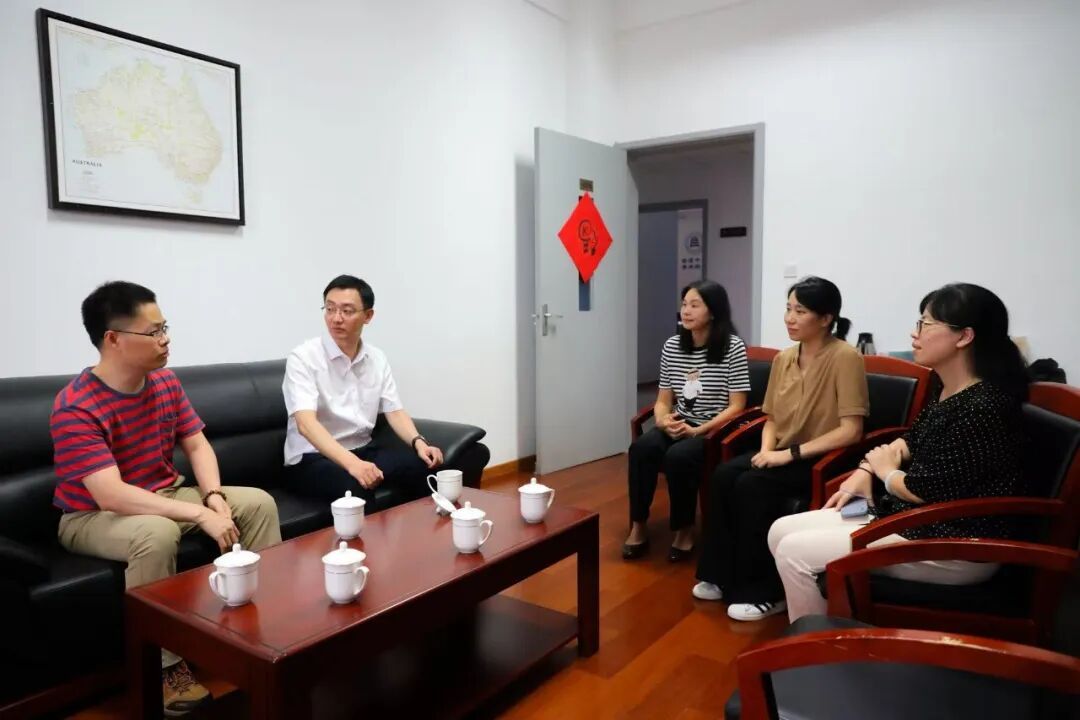 张环宙与校外语教育研究中心主任、外语教育学学科带头人常俊跃教授亲切交流,高度评价其在学科、专业、团队建设中的辛勤付出,祝贺外语教育研究团队在高层次项目和成果上取得的瞩目成绩,希望继续发挥标杆作用,以区域国别学为引领,以外国语言文学为基础,深入谋划外语人才的创新培养和青年教师的成长赋能。
