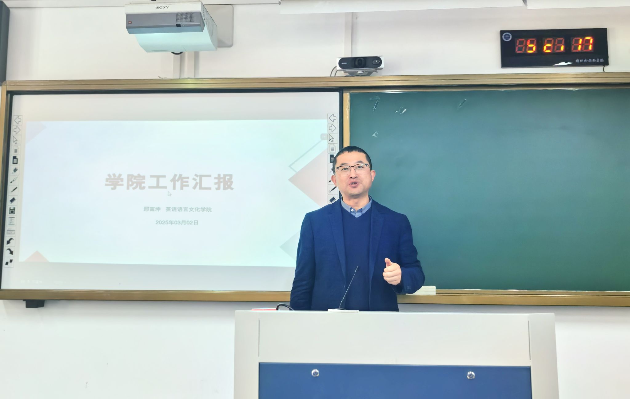 科研副院长郑淑贞介绍了学院将聚焦学科特色凝练、硕士研究生培养、高端成果培养等重点开展新学期工作。教学副院长盛煜冰强调了开学第一天的上课要求、本学期教学工作的重点任务等。副书记欧万彬围绕学科竞赛、就业、心理、学生活动、校庆、外宣等工作作了强调。院长助理周静书面总结报告了学院国际化工作取得的成绩,并对新学期工作做出了规划部署。