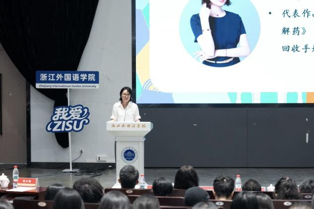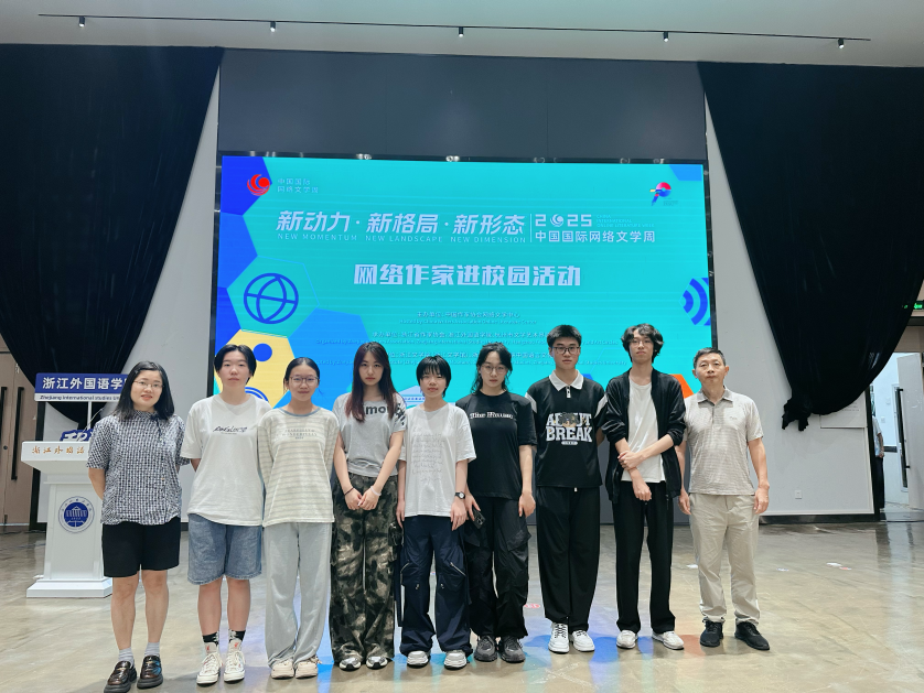 、杭州市文学艺术界联合会联合主办的“知名网络文学作家进校园”活动在望C116报告厅举行。英文学院文学与创作系外国文学学科专业负责人潘家云,文学与创作系教学、科研主管张静静带领25英语5班(文学与创作方向)全体新生参加学习。