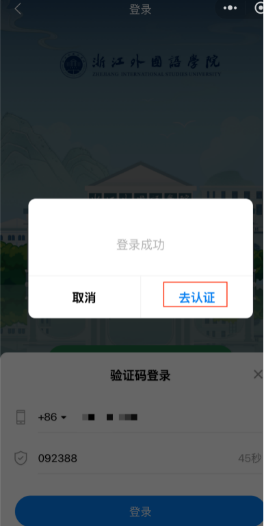 注册用户后,会弹出认证提示,点击“去认证”。拥有大陆居民身份证的校友直接进行“人脸识别”实名认证。(来自港澳台或海外的校友若无内地居民身份证,点击“无内地居民身份用户认证入口”,进入人工实名通道。)