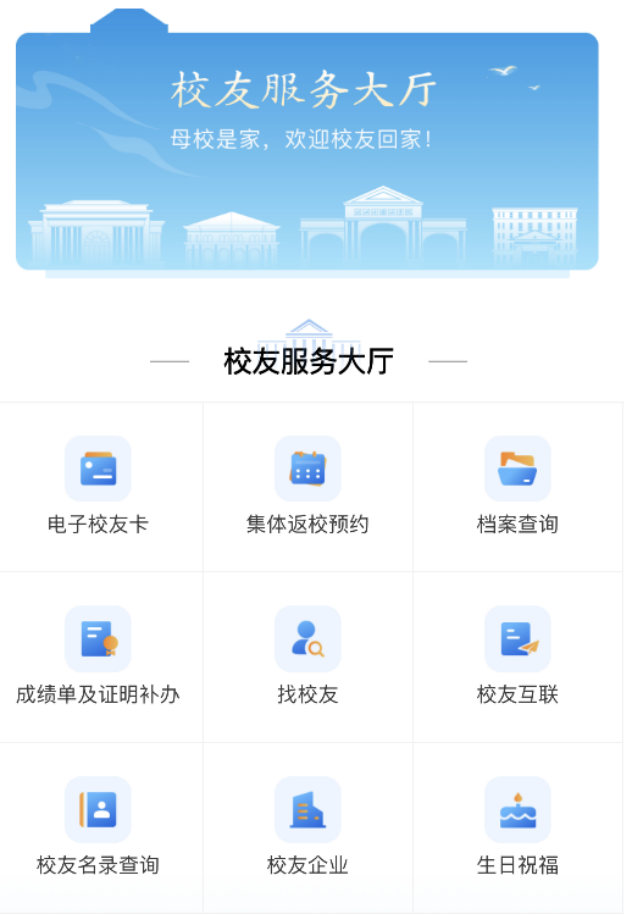 校友通过身份认证后,可在线申领象征校友身份的电子校友卡!