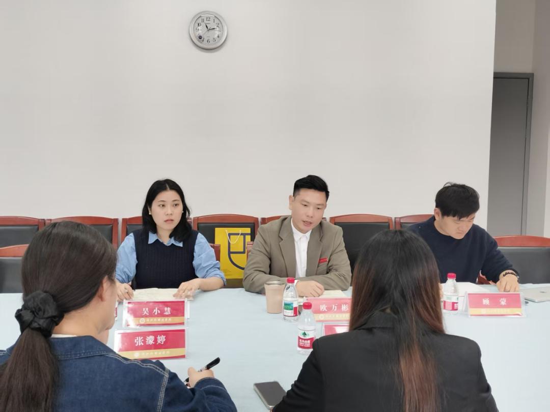交流洽谈。学院党委副书记、纪委书记欧万彬,学工办负责人顾蒙,2026届毕业生就业负责人吴小慧参与座谈。