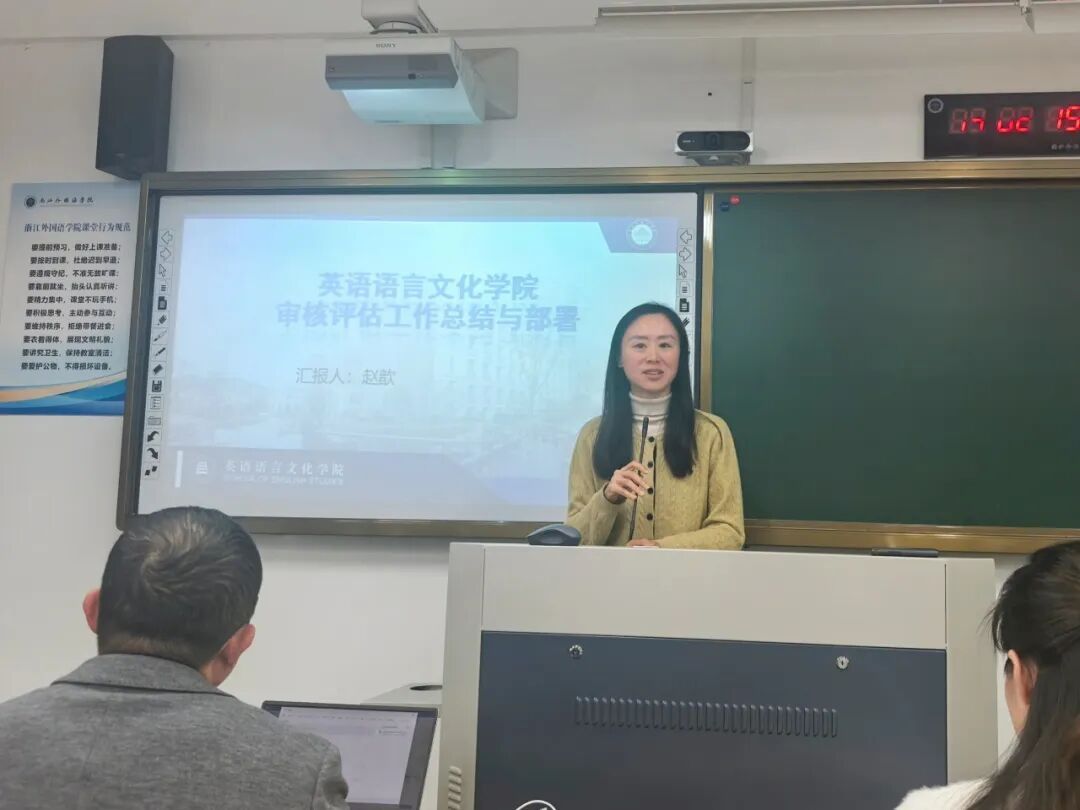学术副院长赵歆对审核评估工作的具体要求进行了部署和强调。她总结了线上评估的成果与不足,强调了线下评估期间课堂纪律、签到坐班等具体要求。她指出,审核评估不仅是对教学质量的检验,更是推动学院内涵式发展的重要契机,全体教职工要高度重视,以评促建,以评促改,共同推动学院教学工作迈上新台阶。