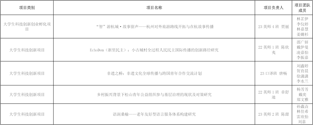 根据《浙江省大学生科技创新活动计划(新苗人才计划)实施办法(试行)》(团浙联〔2010〕13号)、《关于进一步规范浙江省大学生科技创新活动计划(新苗人才计划)项目管理的通知》要求和上级相关要求,英文学院组织开展了2025年新苗人才计划项目申报工作。经组织动员、自主申报、专家匿名评审等,根据各项目的申报书内容和专家评审意见,现将院级立项项目名单公示如下: